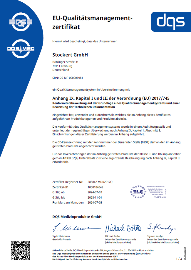 Als Hersteller und Servicepartner von Medizinprodukten unterhalten wir ein leistungsfähiges Qualitätsmanagement, welches uns befähigt, hohe Lieferfähigkeit in Übereinstimmung mit regionalen, nationalen und internationalen Regularien und Standards unserer Zielmärkte zu gewährleisten. Unsere aktive Qualitätspolitik stellt darüber hinaus die Einhaltung von Anforderungen sowie die Umsetzung der Erwartungen unserer Kunden und interessierten Parteien sicher. Somit sichern wir auch langfristig die Wirtschaftlichkeit unserer Organisation.